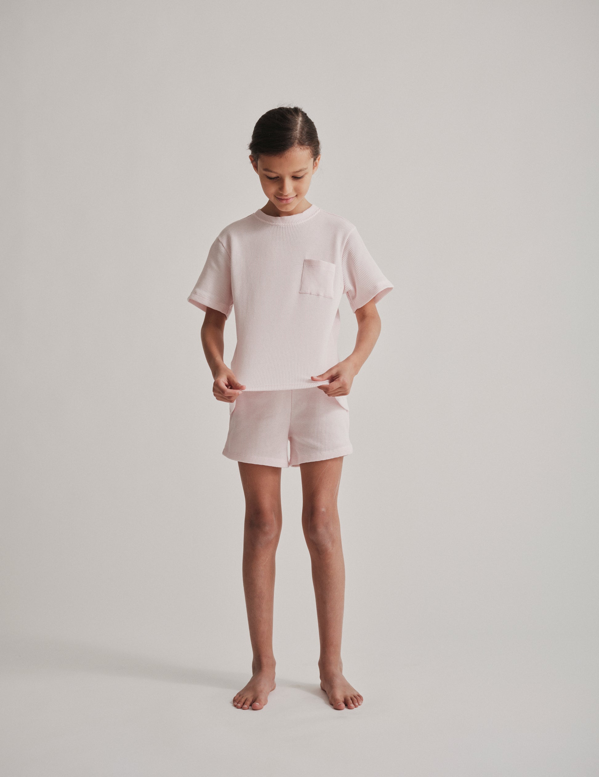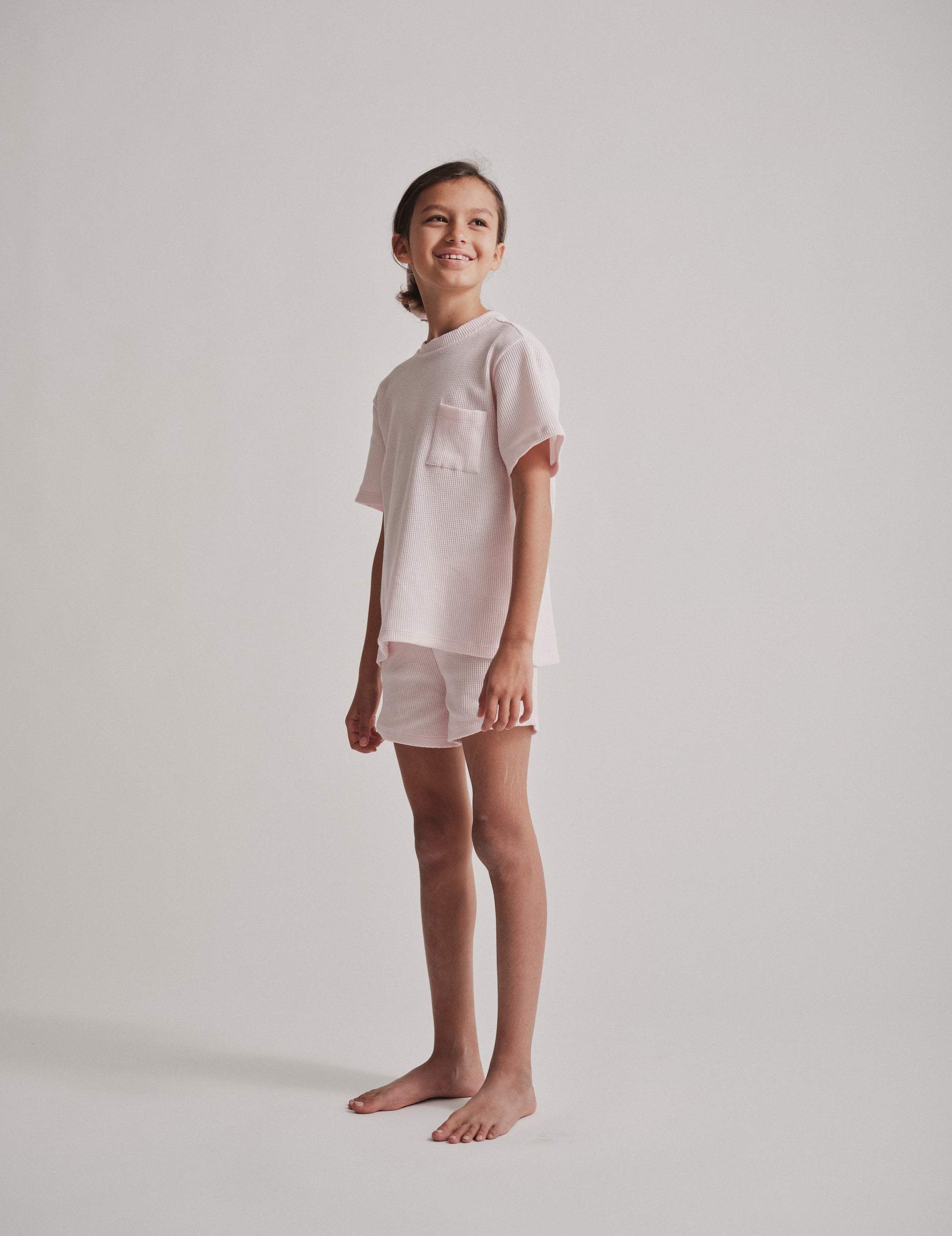 Charlie pyjama in the softest waffled material. This unisex pj comes in two colours, light blue and soft pink.
