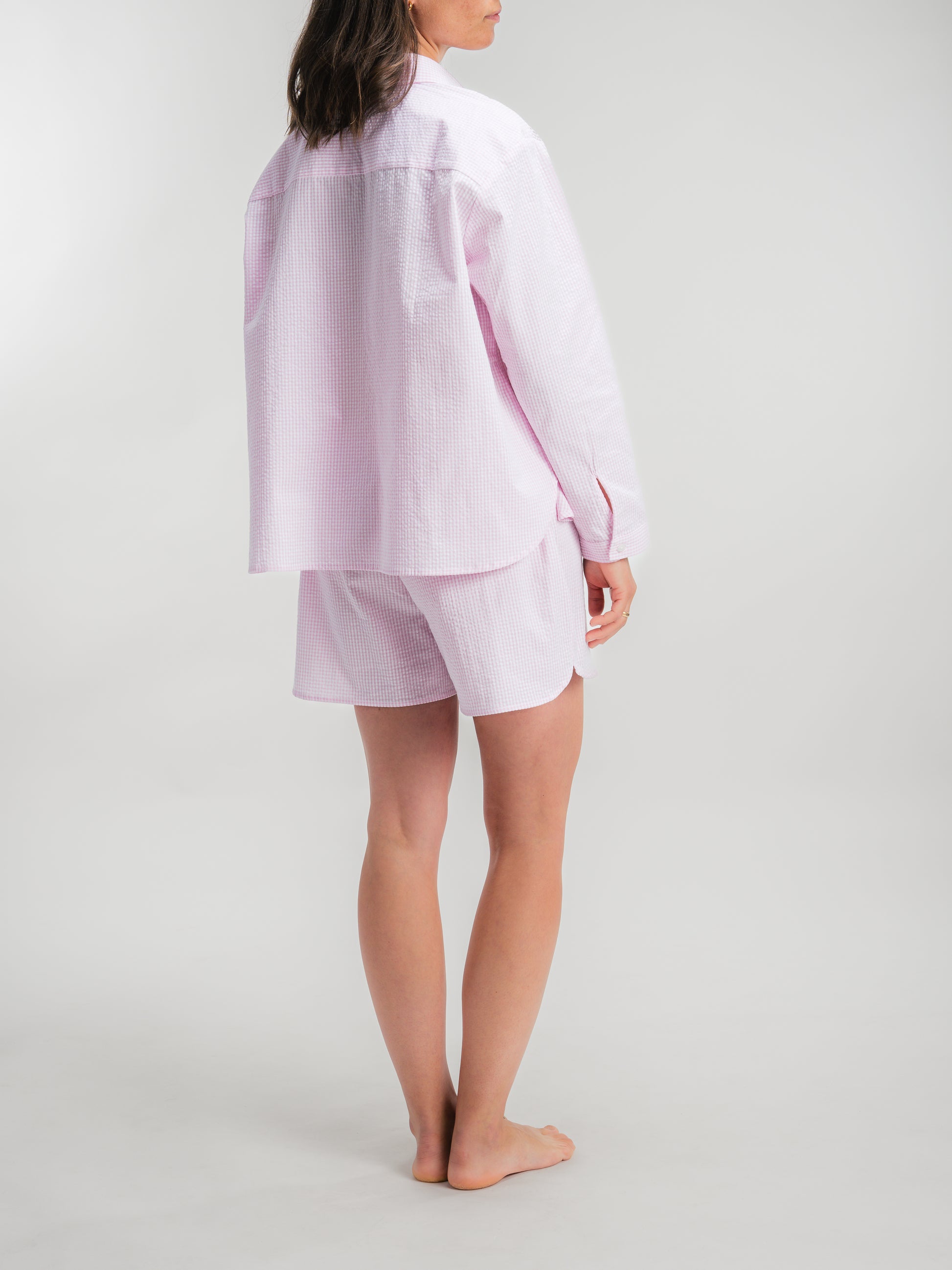 Flattering and slightly cropped A-line shirt with loose fitting shorts. The LAURA Pyjama has a soft and crisp feel made with a loose fit to guarantee comfort.